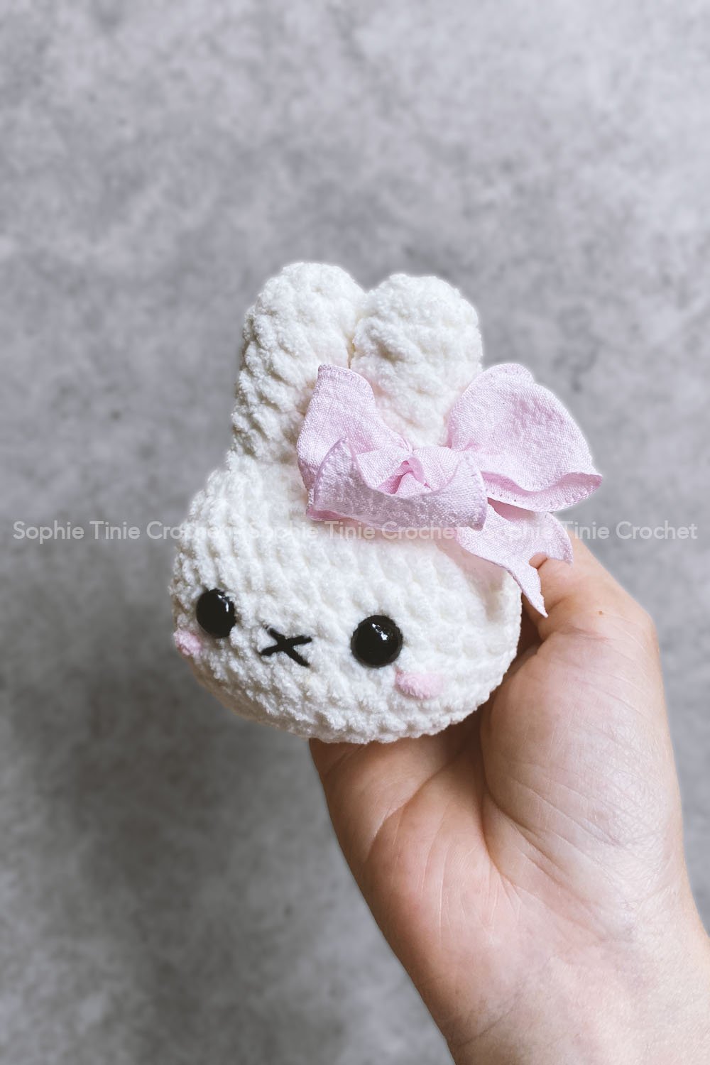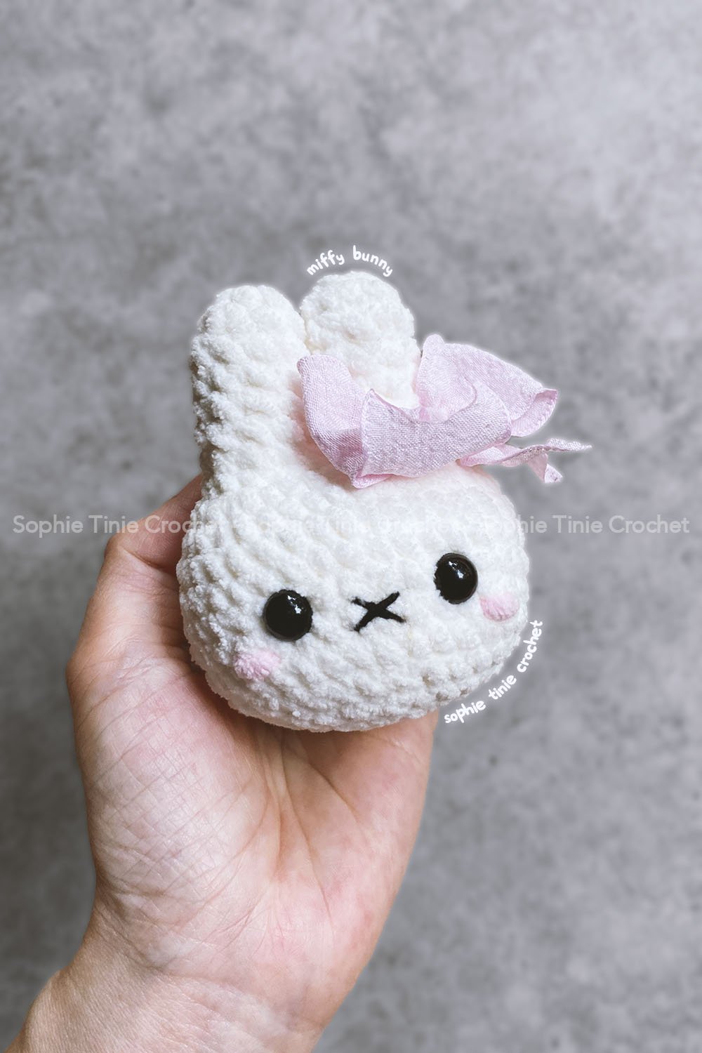 The finished Miffy Keychain measures approximately 8cm (3 inches) tall. Size may vary depending on crochet tension and materials (yarn & hook) used.