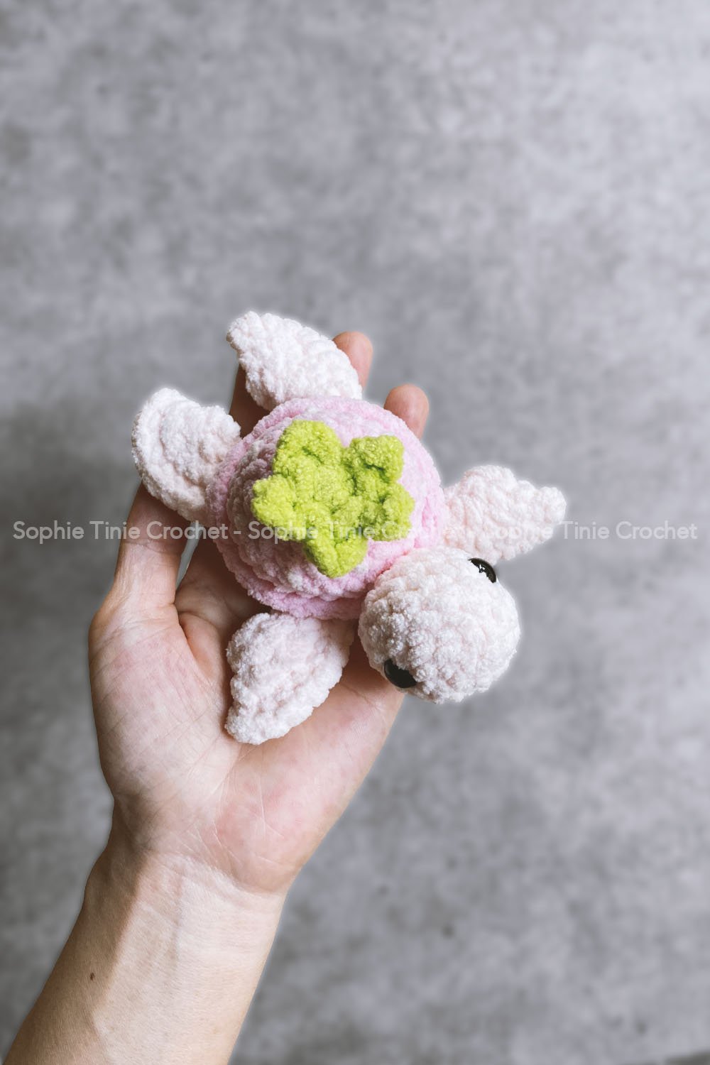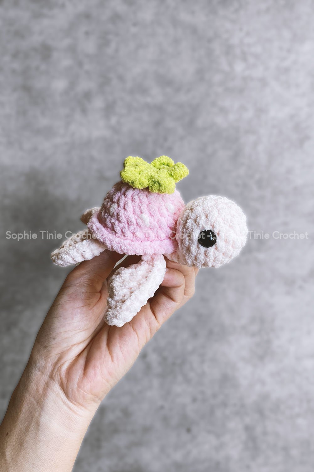Because it’s no-sew, this turtle works up super quickly, making it perfect for craft fairs, keychains, or thoughtful little gifts. Whether you need a pocket-sized ocean buddy or just want to bring fruit-splash fun to your crochet, this Strawberry Turtle is ready to swim into your heart 💗